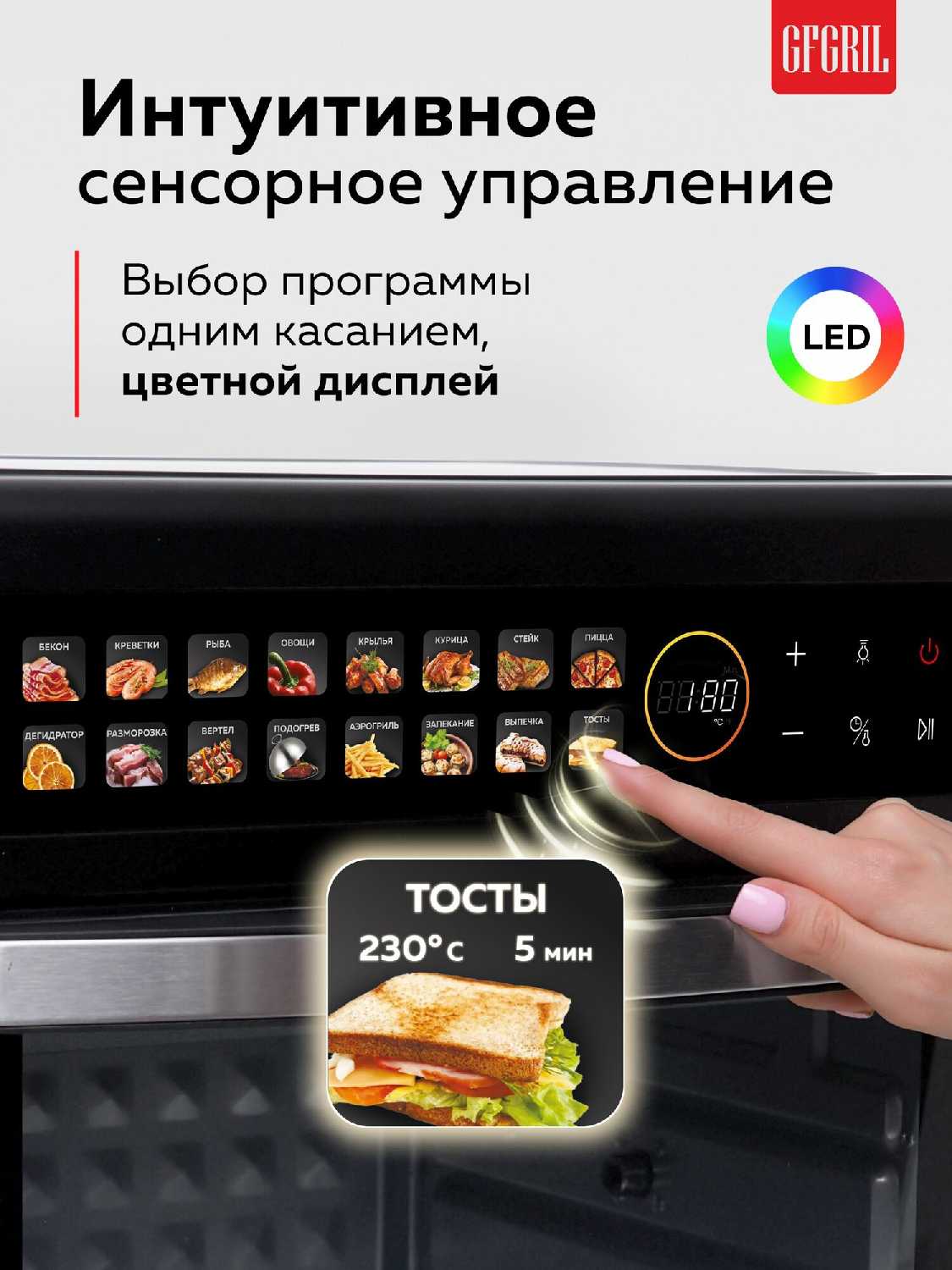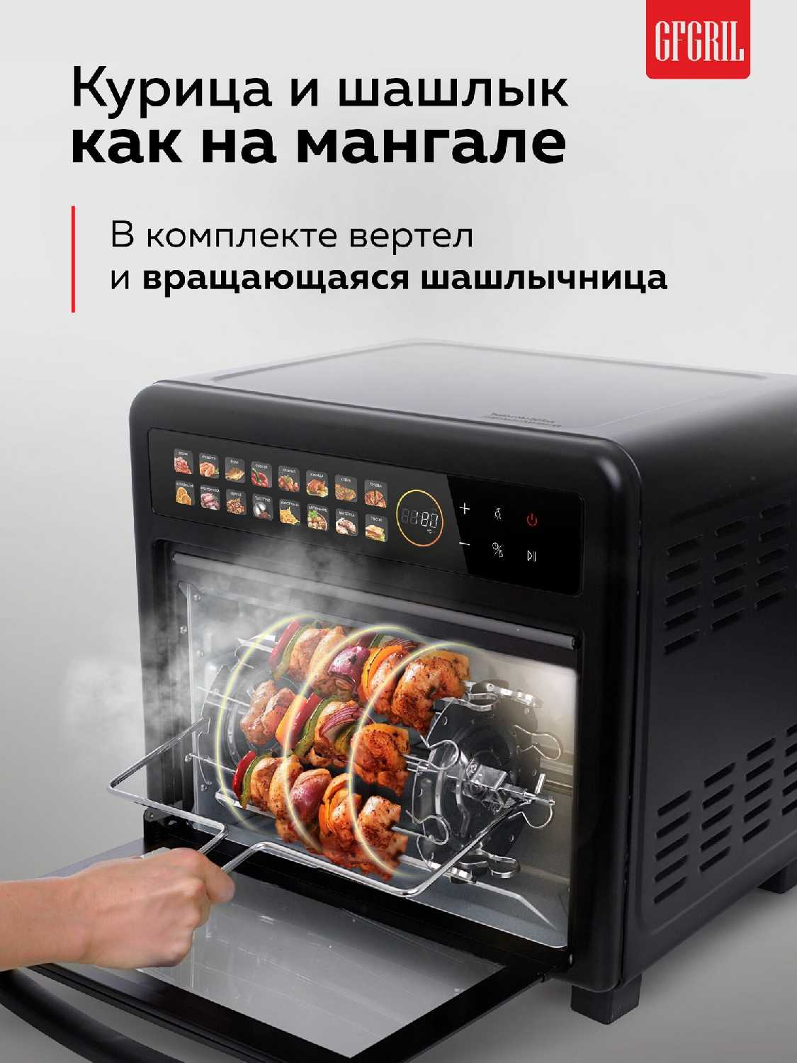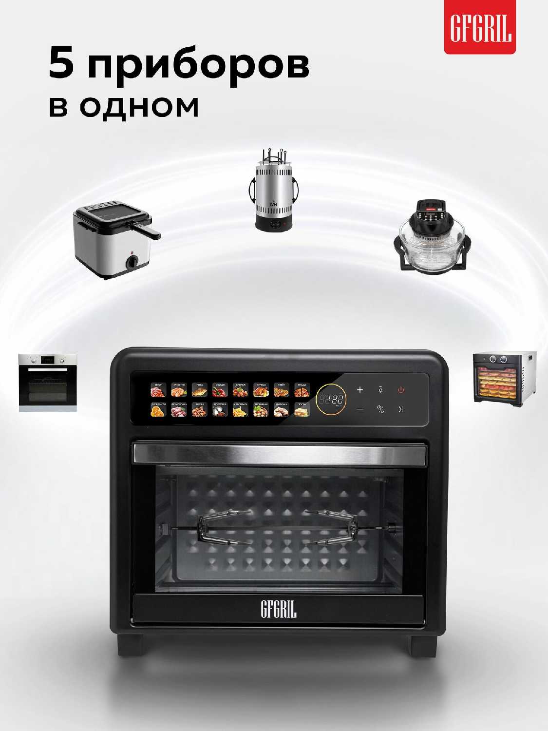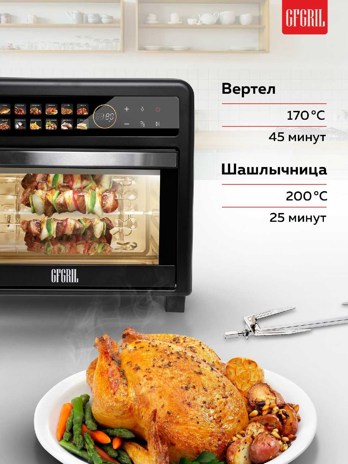 | В комплекте : | вертел, держатель для противня/решётки, поддон для сбора крошек, противень, решётка |