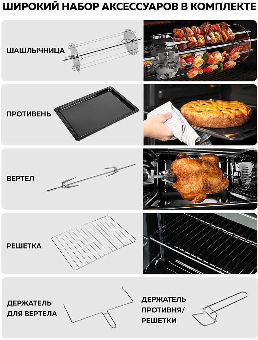 | В комплекте : | вертел, держатель для противня/решётки, противень, решётка, ухват |
