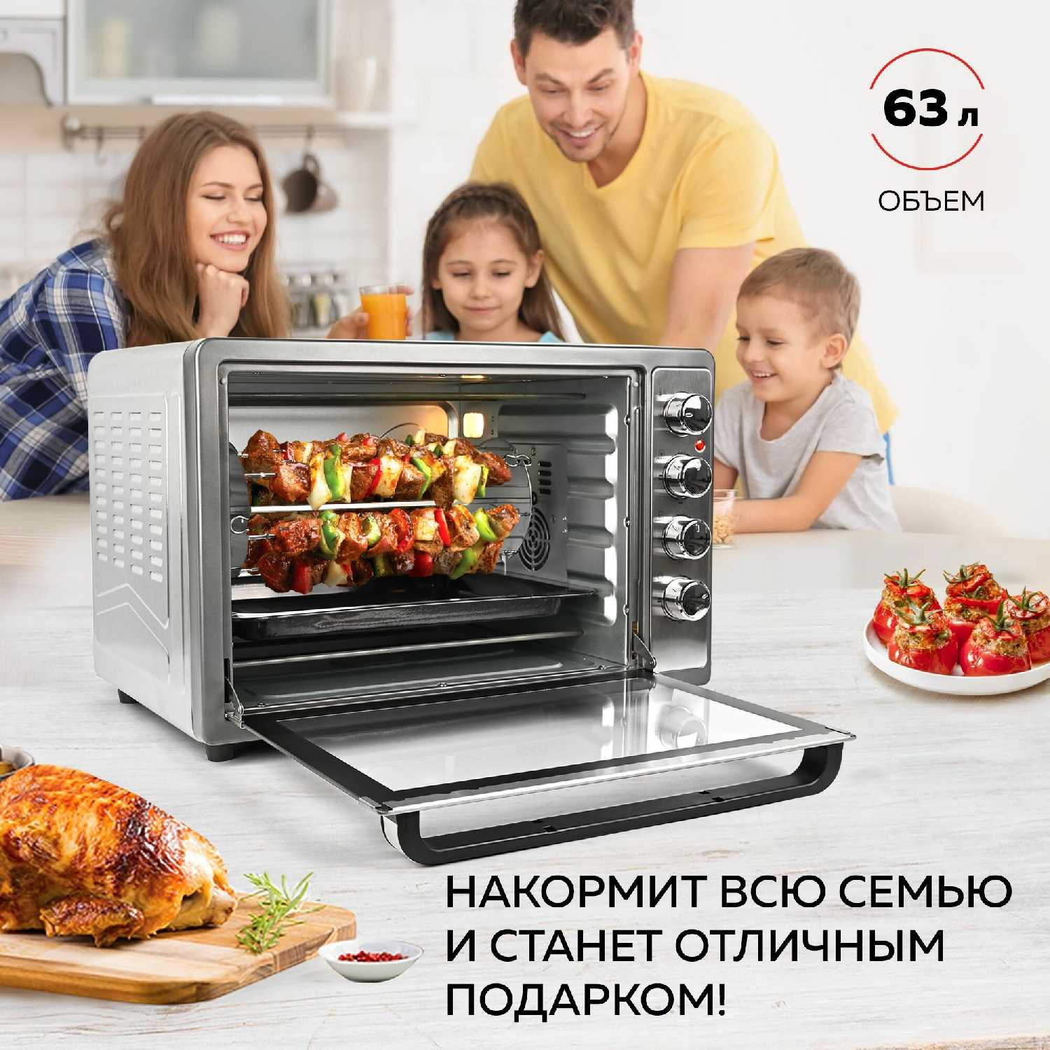 Отличная электродуховка, с большим внутренним объёмом.