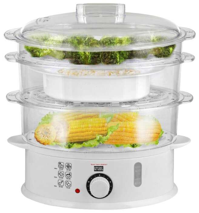 - Трёхъярусная система с раздельными контейнерами для одновременного приготовления: