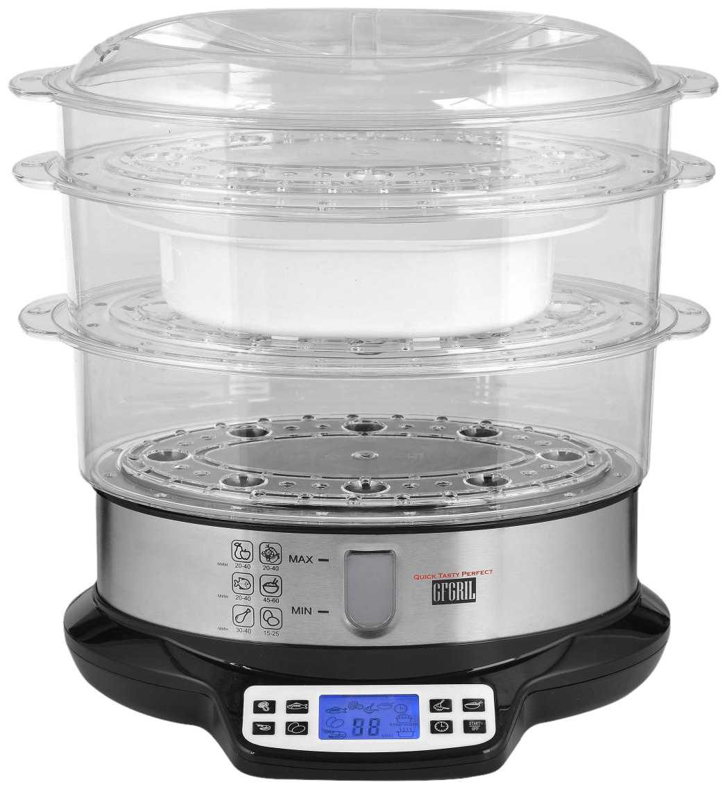 Быстро, три уровня, легко мыть, удобные таймеры, есть рисоварка. Компактная, легко хранить.
