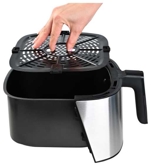 Чаша на 5 литров вмещает до 4 крупных куриных окорочков, целую тушку цыпленка или порцию картофеля фри на 3-4 человек. Благодаря вертикальной конструкции продукты не наваливаются друг на друга, что обеспечивает равномерную прожарку. Для мелких изделий (наггетсы, грибы) можно использовать двухуровневую решетку из комплекта. -