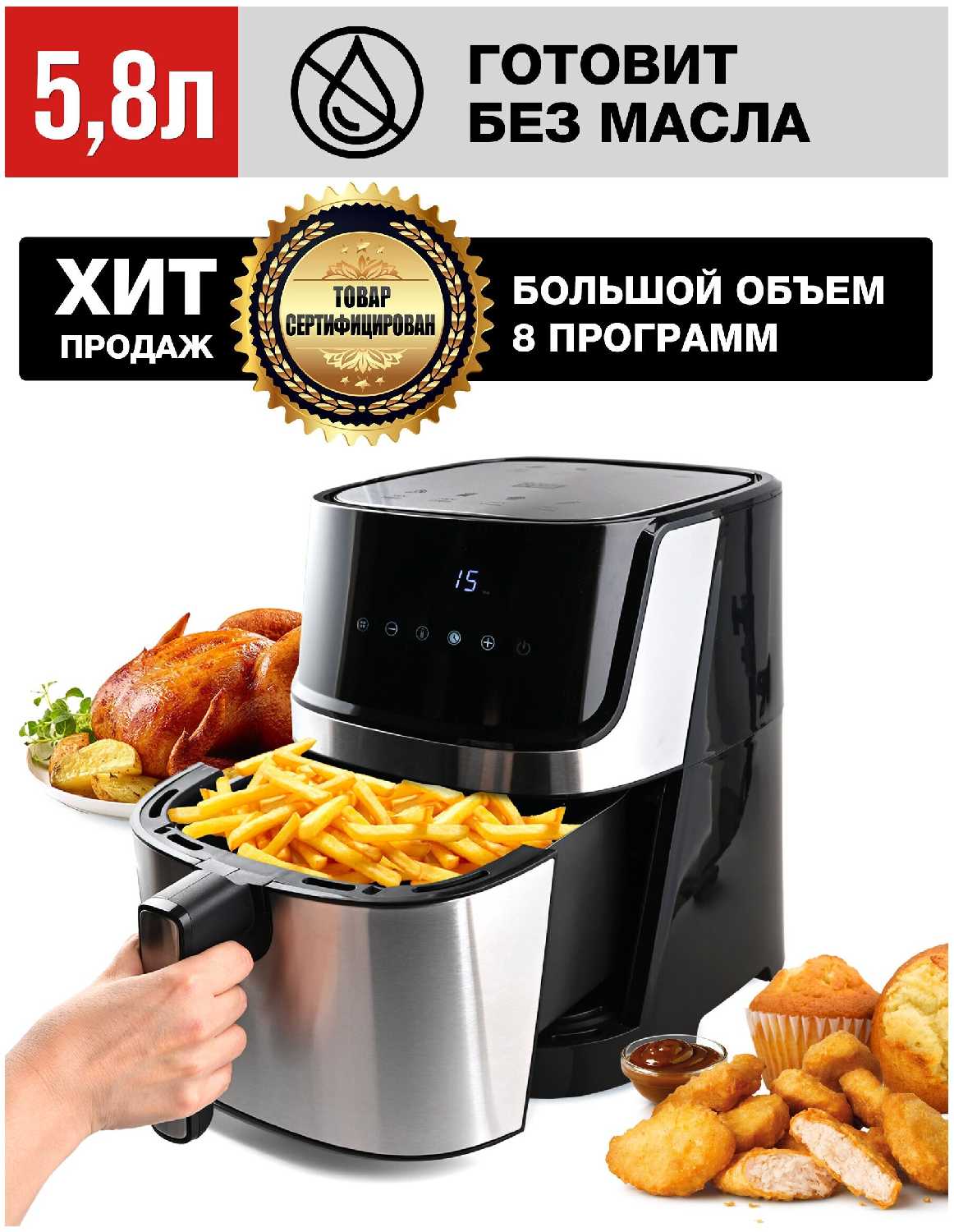 - + Отличный аэрогриль