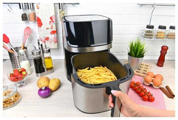 - + Быстро готовит, без жира и масла, за счет скорости готовки экономит электроэнергию.