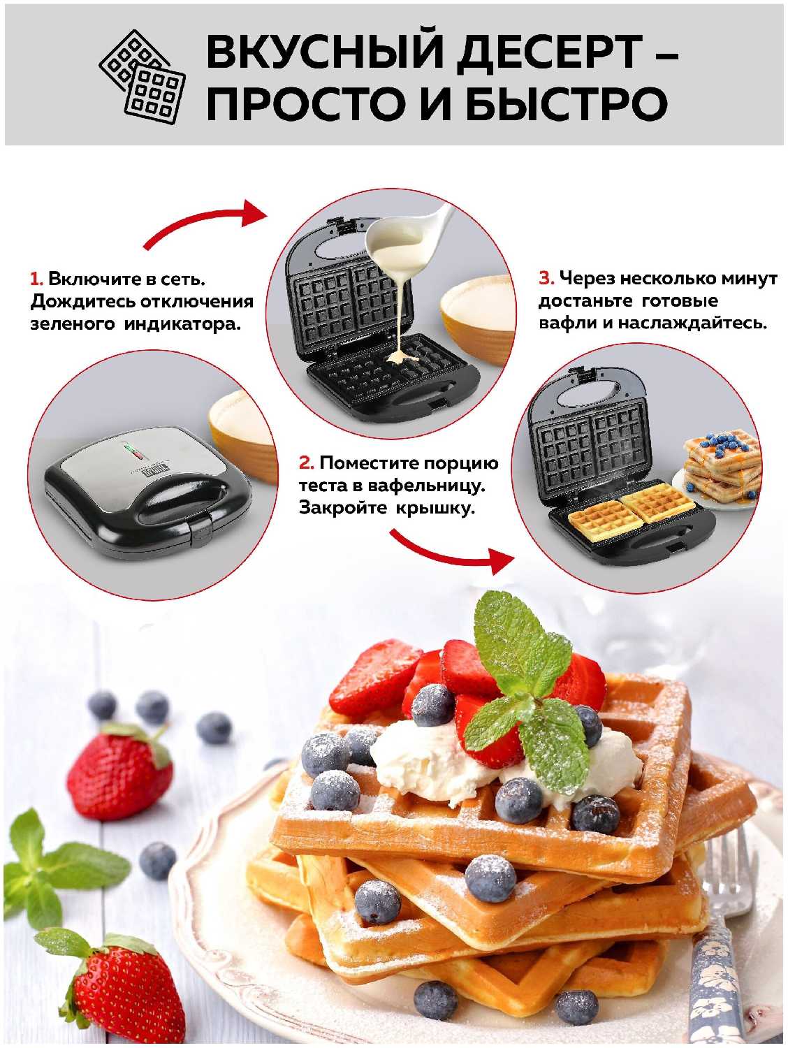 - + есть все для вафель (кроме теста)