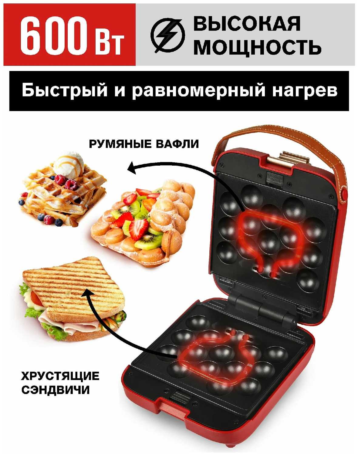 Антипригарные панели обеспечивают равномерную прожарку без подгорания при правильном времени выпечки. Большинство пользователей отмечают золотистую корочку по всей поверхности, особенно при приготовлении овощных вафель (кабачковых) и сэндвичей. Однако при перегрузке начинкой или слишком толстом хлебе может потребоваться дополнительный цикл прожарки для середины изделия. -
