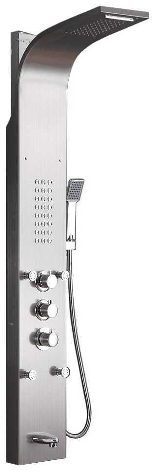 - + Отличная недорогая душевая панель. Материал и качество сборки на высоте. Все элементы (смеситель, насадки для душа и гидромассаж) работают без нареканий. Имеется нижний каникул для наполнения ведёрка.