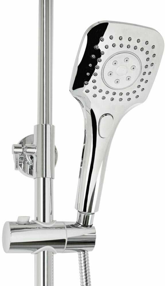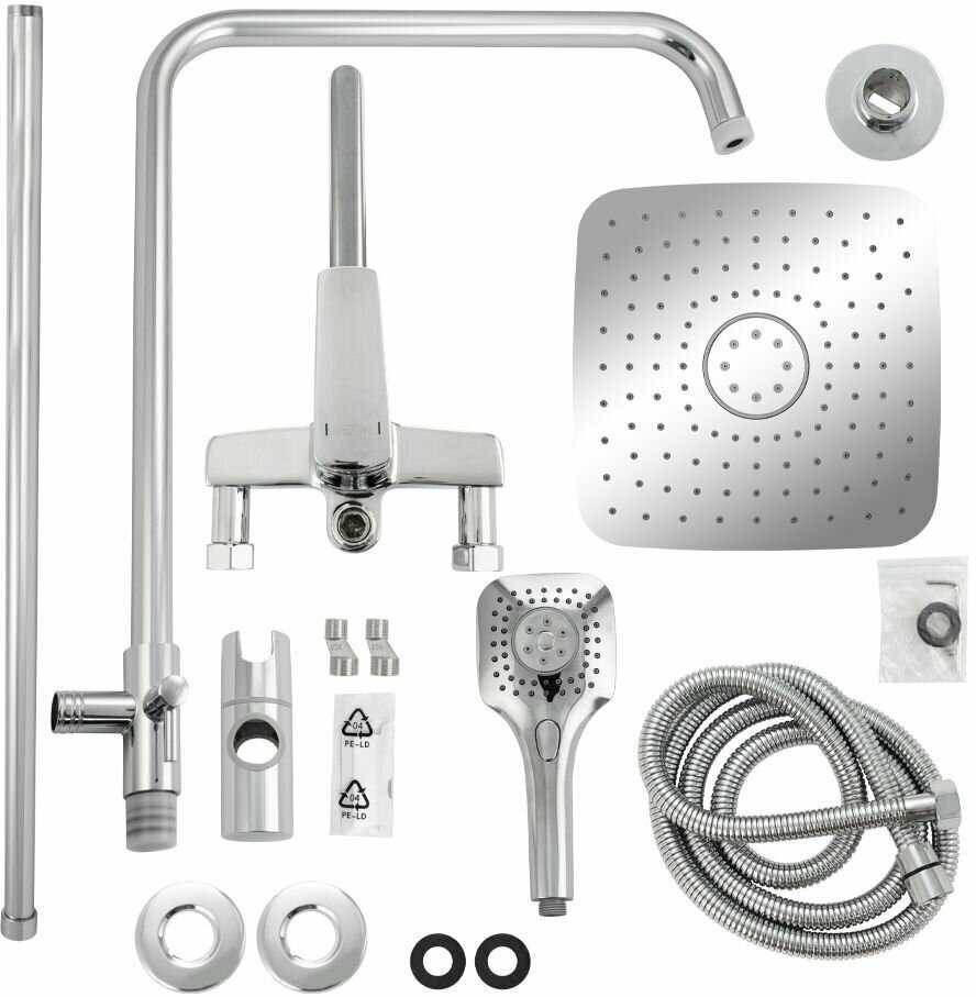 Комплектация : | верхний душ, держатель лейки, дивертор, лейка, переключатель потоков, смеситель, шланг |