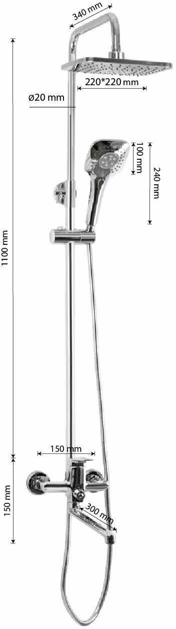 Высота стойки для душа : | 1100 мм |