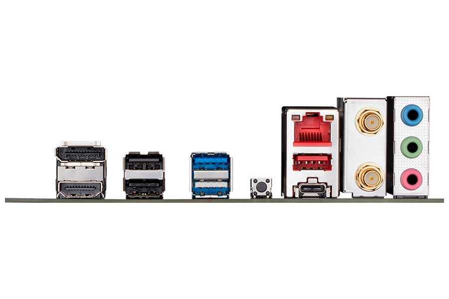 | Разъемы на задней панели : | 2 x USB 3.2 Gen1 Type-A, 3 x USB 2.0 Type-A, DisplayPort, HDMI, LAN RJ-45, SMA (для антенны Wi-Fi), USB 2.0 Type-A, USB 3.2 Gen1 Type-A, USB 3.2 Gen1 Type-C, USB 3.2 Gen2 Type-A |