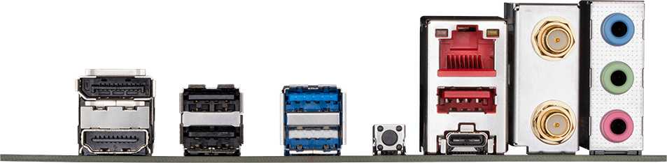 | Разъемы на задней панели : | 2 x USB 3.2 Gen1 Type-A, 3 x USB 2.0 Type-A, DisplayPort, HDMI, LAN RJ-45, SMA (для антенны Wi-Fi), USB 2.0 Type-A, USB 3.2 Gen1 Type-A, USB 3.2 Gen1 Type-C, USB 3.2 Gen2 Type-A |