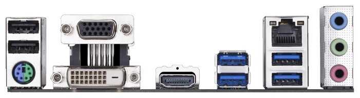 Разъемы на задней панели : | 4 x USB 2.0 Type-A, 4 x USB 3.2 Gen1 Type-A, DVI, HDMI, LAN RJ-45, PS/2 (клавиатура), PS/2 (клавиатура/мышь), PS/2 (мышь), VGA |