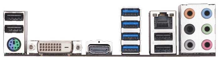 Разъемы на задней панели : | 4 x USB 3.2 Gen1 Type-A, DVI, HDMI, PS/2 (клавиатура), PS/2 (мышь) |