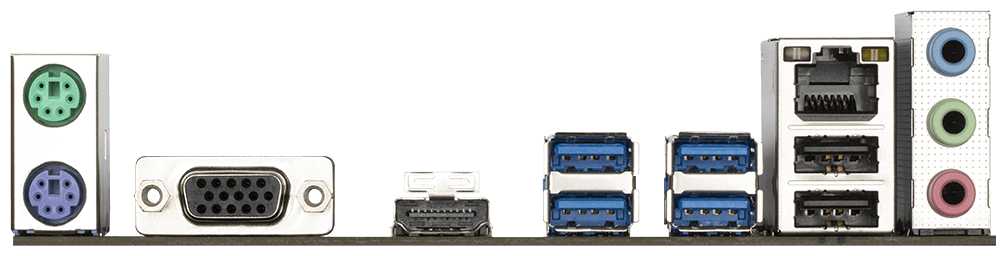 | Разъемы на задней панели : | 4 x USB 3.2 Gen1 Type-A, HDMI, PS/2 (клавиатура), PS/2 (клавиатура/мышь), PS/2 (мышь), VGA |