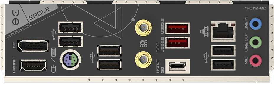 | Разъемы на задней панели : | 2 x SMA (для антенны Wi-Fi), 2 x USB 3.2 Gen1 Type-A, 2 x USB 3.2 Gen2 Type-A, 4 x USB 3.2 Gen1 Type-A, 6 x USB 2.0 Type-A, DisplayPort, HDMI, LAN RJ-45, PS/2 (клавиатура/мышь), SMA (для антенны Wi-Fi), Thunderbolt, USB 3.2 Gen1 Type-C |
