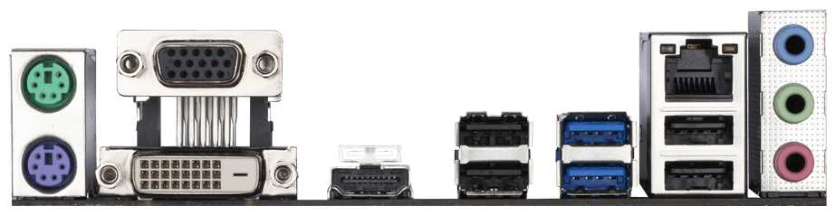 Разъемы на задней панели : | 2 x USB 3.2 Gen1 Type-A, DVI, DisplayPort, HDMI, PS/2 (клавиатура), PS/2 (мышь), VGA |
