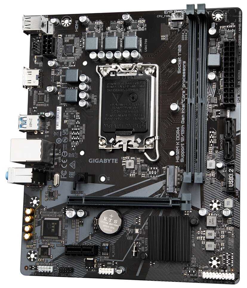 | Комплектация : | Материнская плата Gigabyte H610M K DDR4, s1700, H610, 2xDDR4-3200, mATX |