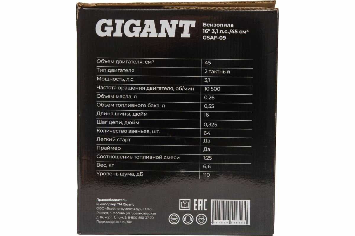 Отзывы о Цепная пила Gigant GSAF-09