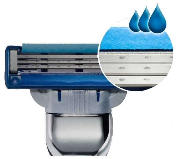 - Три специально наклонённых лезвия для глубокого и точного бритья:
