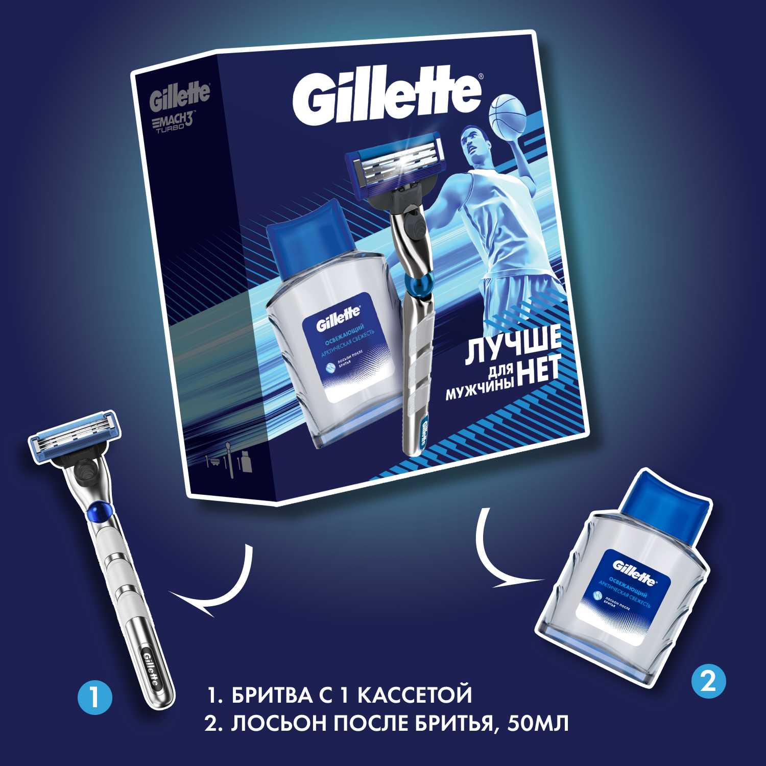| Дополнительная информация : | многоразовый бритвенный станок Gillette Mach3 Turbo 1 шт., 1 сменная кассета (надета на станок) и лосьон после бритья 50мл. |