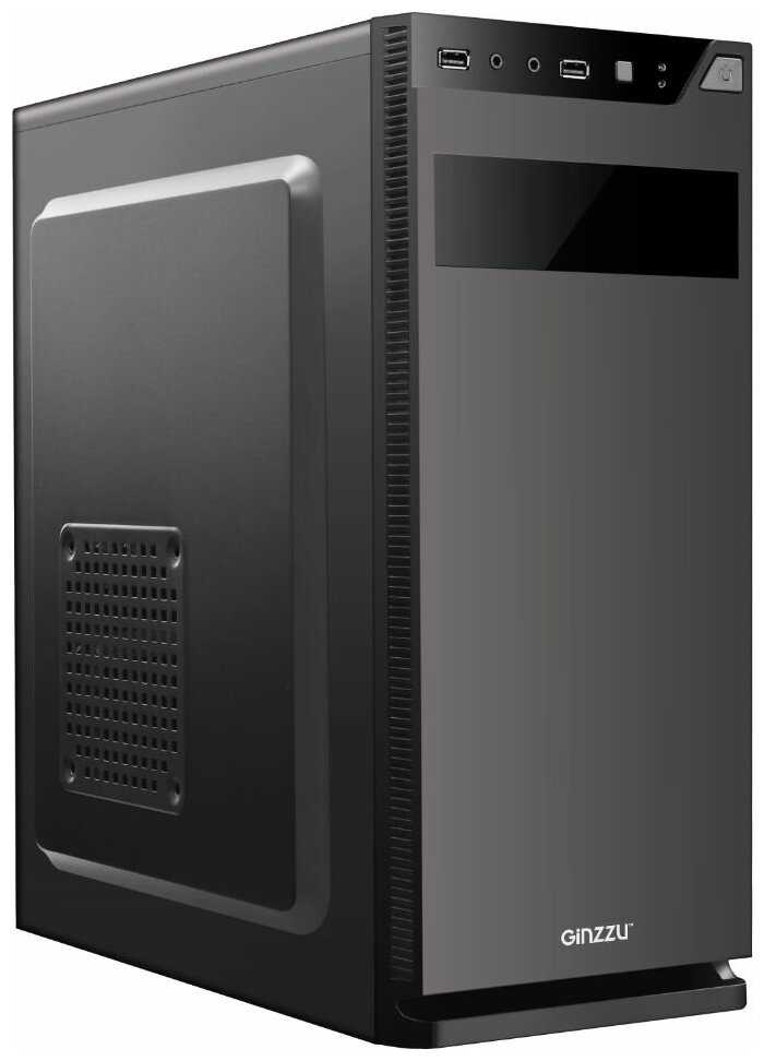 - + Мне понравилось, что у этого компьютерного корпуса Ginzzu A190 Black достаточно строгий и современный дизайн, место для блока питания расположено сверху и есть возможность установить не только небольшую материнскую плату стандарта Micro-ATX, но и материнскую плату большего размера с большей функциональностью стандарта ATX.
