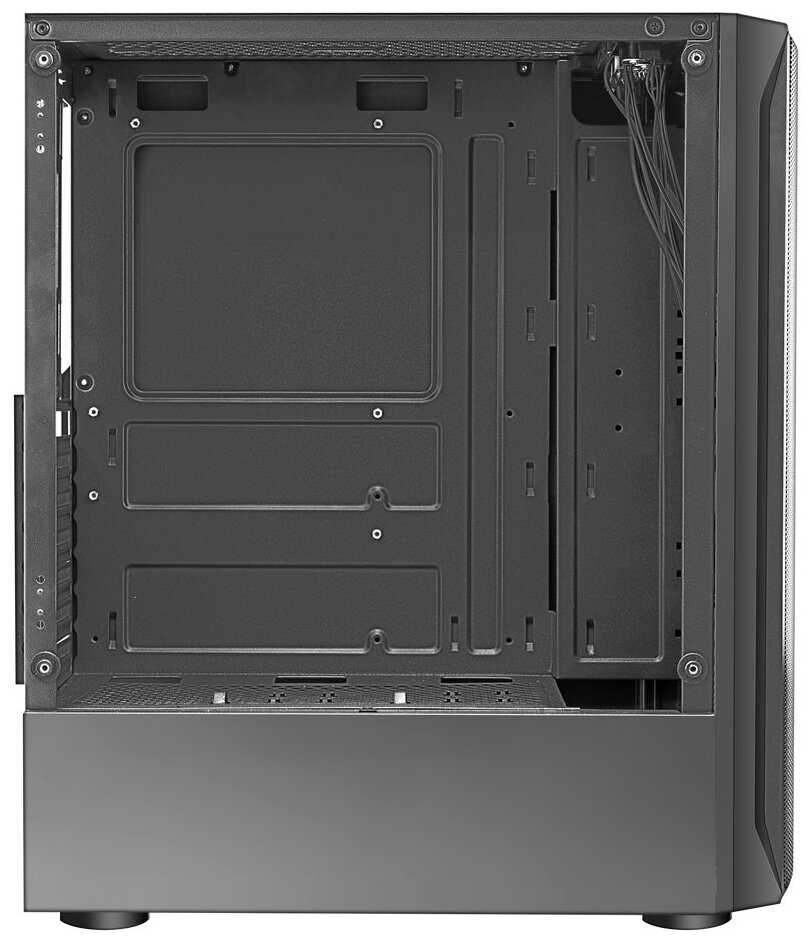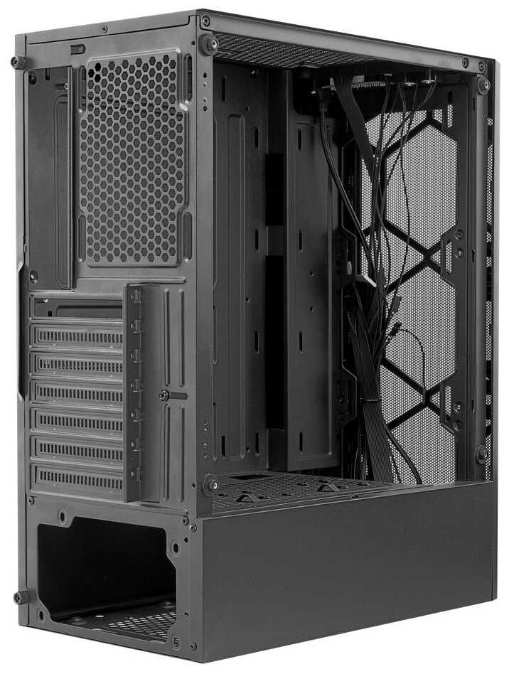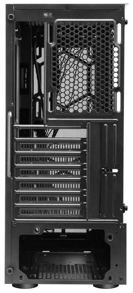 - Корпус поддерживает установку до 4 вентиляторов (3 спереди, 1 сзади) для улучшенного охлаждения мощных компонентов.