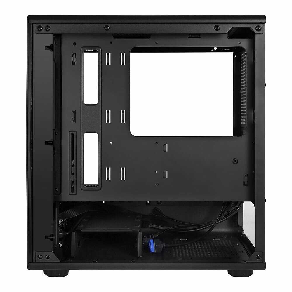 - + Хорошо продувается, сверху можно крепить 2 кулера. Удобно делать кабель менеджмент