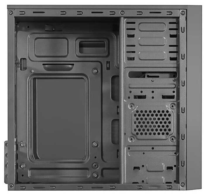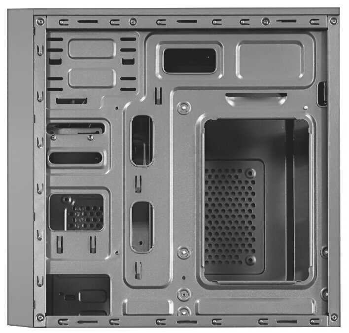 - + Цена, количество отсеков для накопителей, выпуклые стенки корпуса, отверстия для забора воздуха на фронтальной панели.