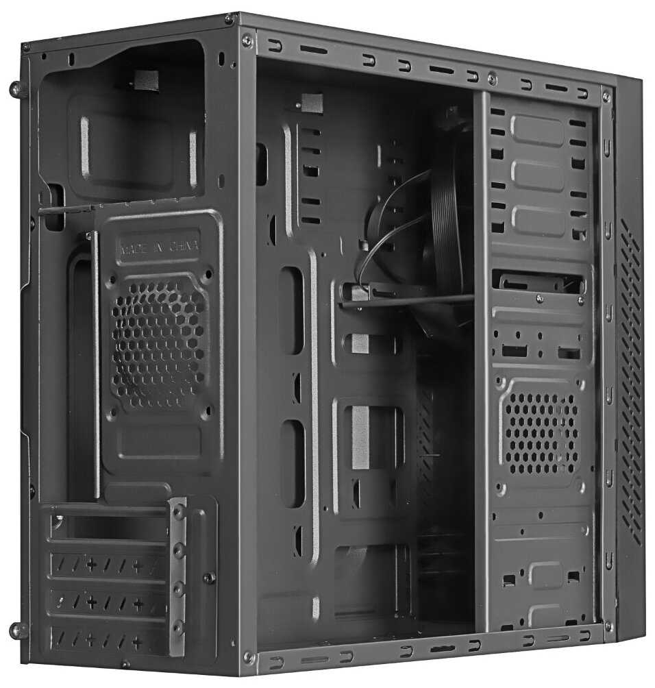 Такая компактность обуславливается необходимостью установки материнской платы форм-фактором microATX (mATX). Максимально возможная высота охлаждения процессора 160 мм.Блок питания располагается в верхней части корпуса, что является несомненно минусом, так как весь горячий воздух отводимый с процессора будет сразу же поступать в блок питания.