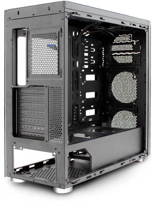 - - Отсутствие вентиляторов, нет фильтра на передней панели, задние стенки выламываются, крайне сложно прикрутить нижний вентилятор на передней панели, из-за то что там несъемные перегородки корпуса.