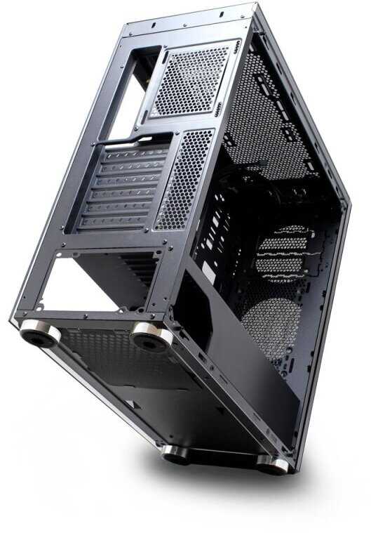 - Ребристые усилители в зоне крепления материнской платы предотвращают прогиб под весом видеокарт до 1.2 кг.