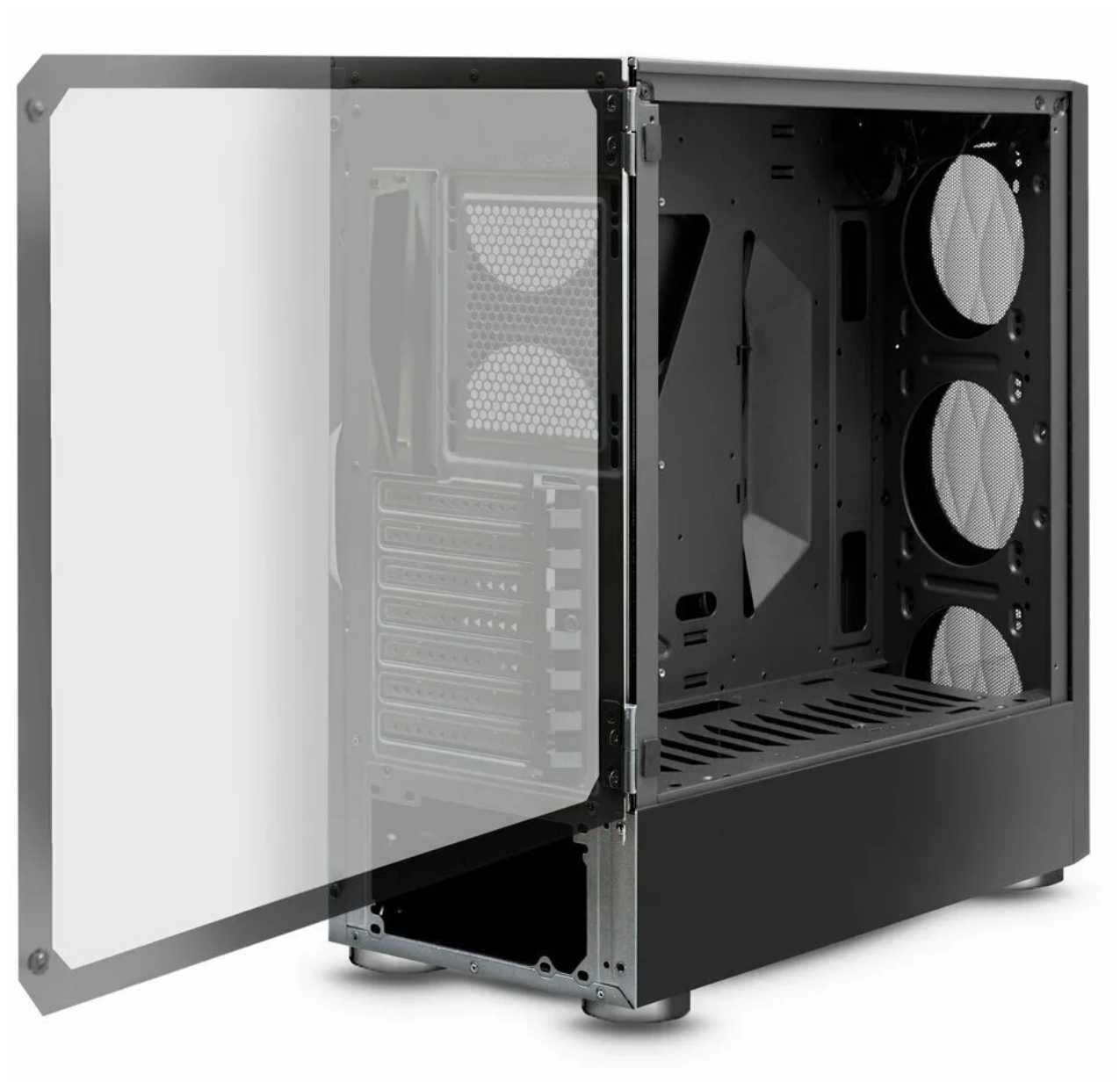 - Боковая панель из закаленного стекла крепится на магнитных петлях — открывается одним движением без откручивания винтов.