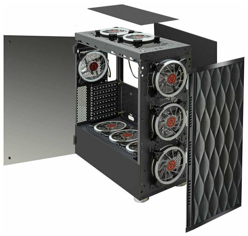 - Поддержка установки до 9 вентиляторов (8×140 мм или 9×120 мм) позволяет гибко настраивать воздушные потоки.