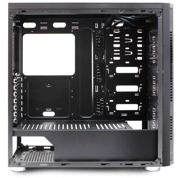 - + Много "плюшек" за свои деньги. Радует открывающаяся стеклянная боковая створка. Верхняя сетка на магнитах. В комплекте заглушки для USB-портов и входов под микрофон и наушники, удлинённые болты для установки вентиляторов (хоть и не под все отверстия), хомуты для кабель-менеджмента. Много места под кабель-менеджмент. Хорошо продувается.