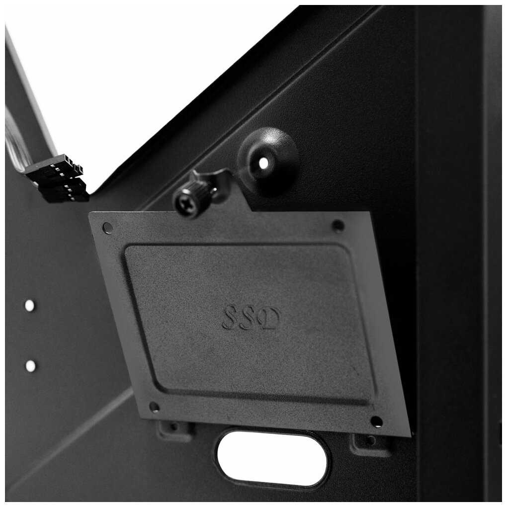 - Отсеки для 2.5" SSD расположены за кабельными гребенками — монтаж требует демонтажа материнской платы.