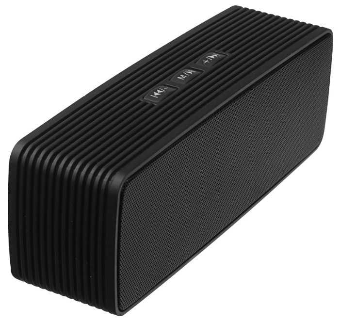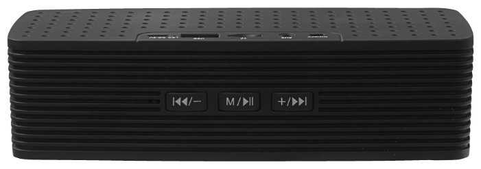 Один динамик. Bluetooth работает на расстоянии от источника не более 5 метров (на открытом пространстве). Периодически пропадает звук во время воспроизведения. Большие размеры колонки. Нет басов.
