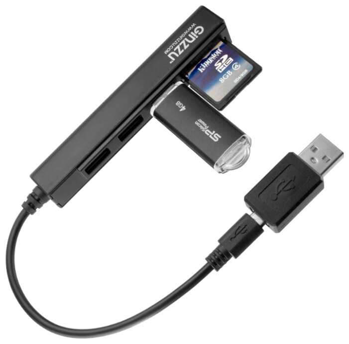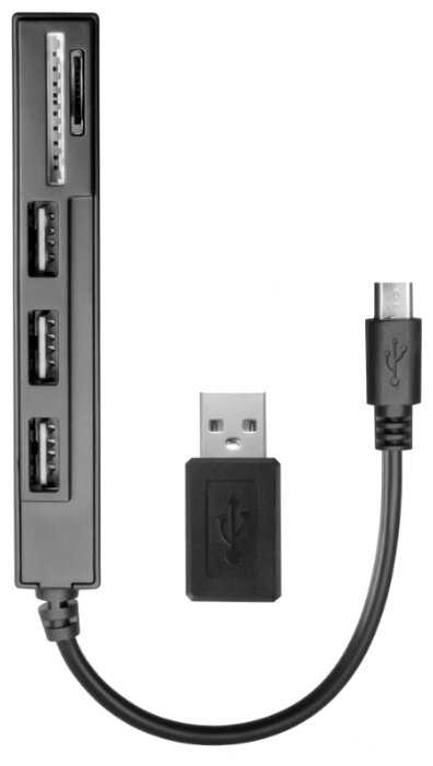 - + Есть переходник на микроюсб. OTG пусть и 2.0. Можно к мобильнику подключать обычные флэшки. Также есть обычный ЮСБ 2.0 чтоб сразу к компьютеру подключать. Есть кардридер. Универсальное устройство, жаль что ЮСБ 2.0