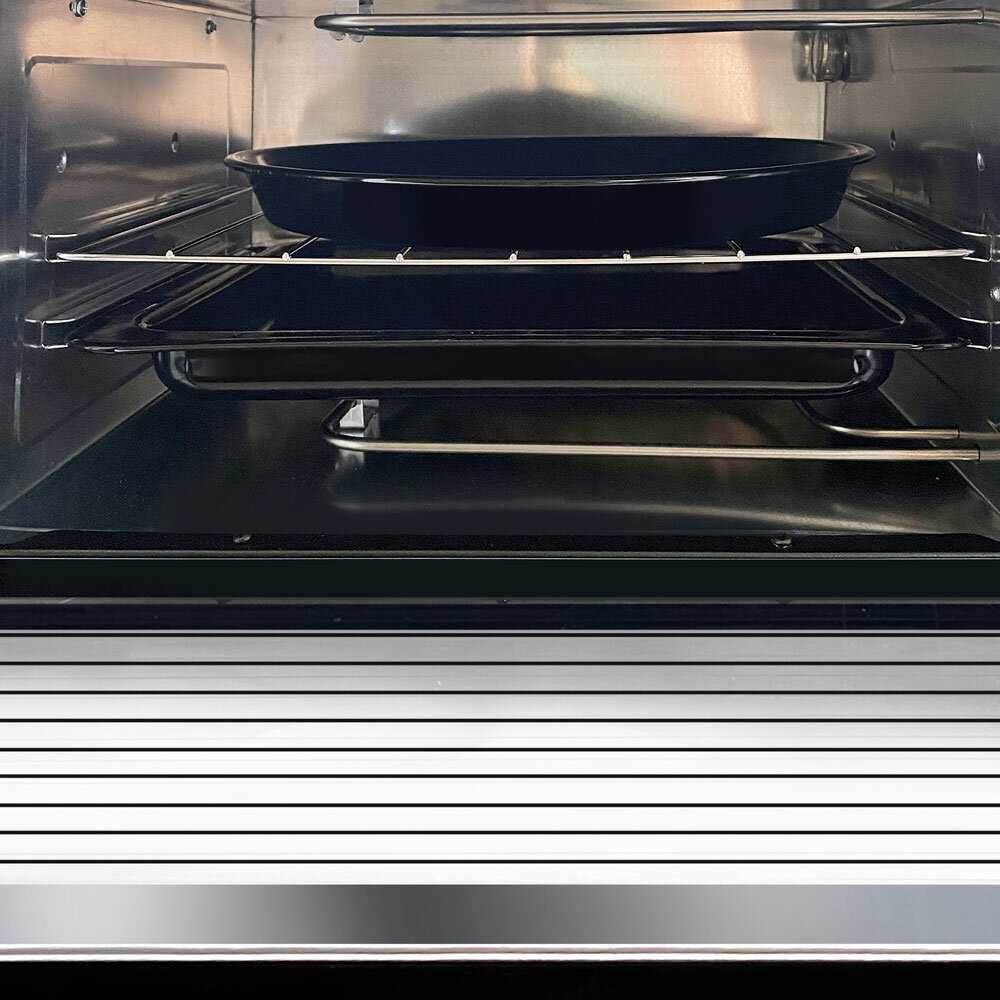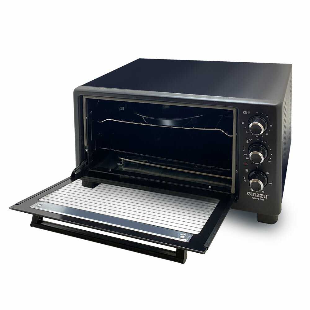 Мини-печь достаточно габаритная, все-таки объем 34 литра - это немало. Управление максимально простое, легко разобраться даже без инструкции. Разогревается печь быстро, 2 противня разной формы позволяют готовить несколько блюд одновременно. Стекло дверцы однослойное, поэтому нагревается во время работы печи. Это нужно учитывать и быть аккуратнее.