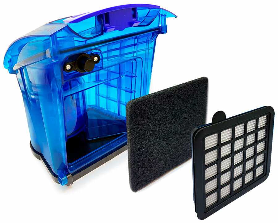 Несмотря на заявленный объем 2.3 л, реальная полезная емкость меньше из-за конструкции с двумя фильтрами внутри. Чистка контейнера описана как "квест": узкие щели и углы трудно промывать вручную, особенно при налипании шерсти. Резиновые уплотнители затрудняют извлечение мусора. У 30% пользователей контейнер неплотно фиксировался, вызывая протечки пыли. Положительно отмечают лишь съемность элементов для мойки. -