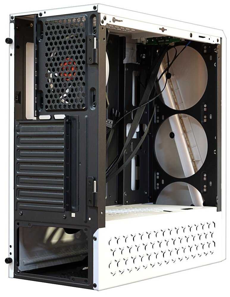 боковая панель на петлях, поддержка вентиляторов спереди 3 х 120 мм, съемная корзина для HDD кабельные каналы, блок питания в отдельном воздуховоде установлены фильтры забора воздуха, RGB подсветка передней панели с 16-ю режимами