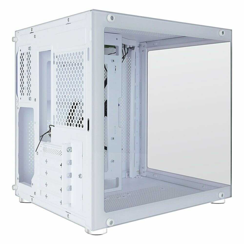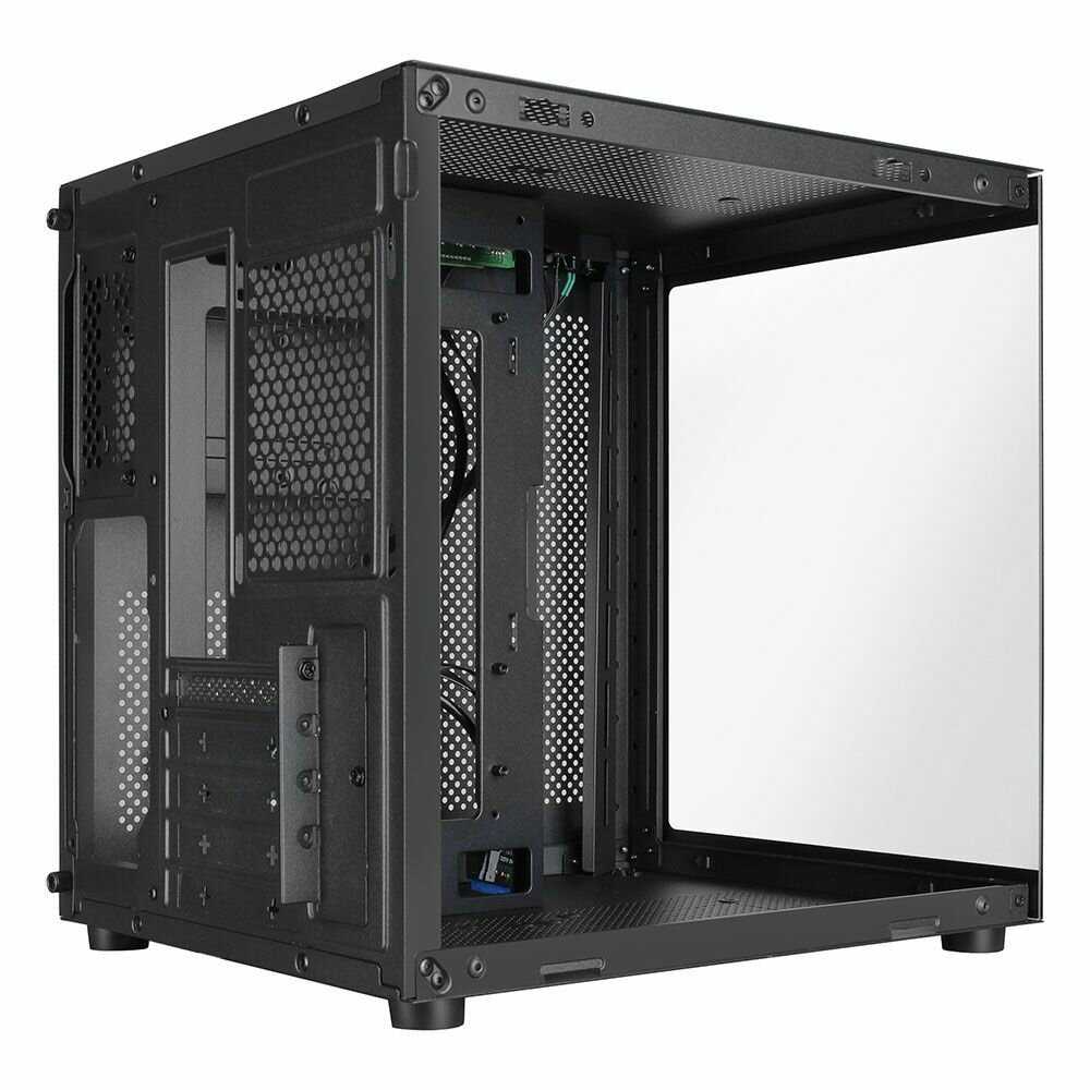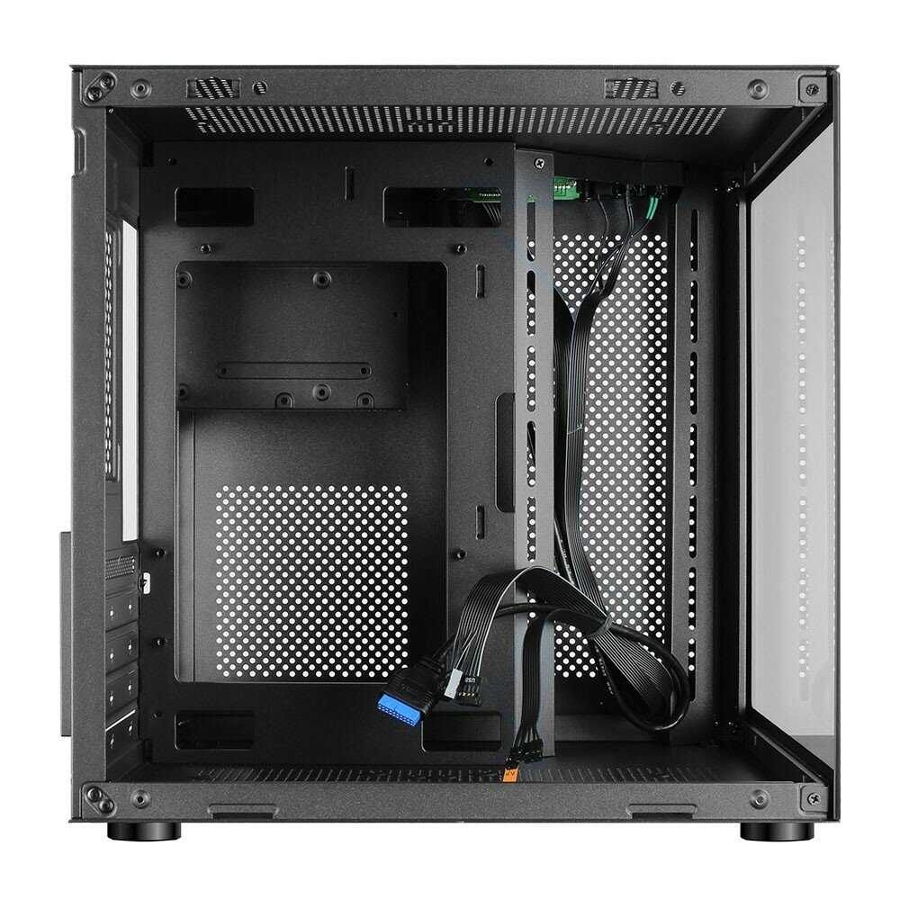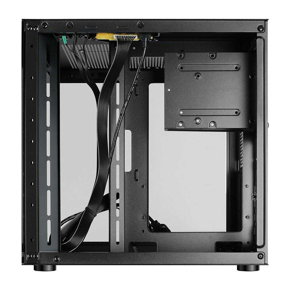 - + В целом, приятный компактный корпус. Сборка в нём выглядит хорошо. Карта от PowerColor RX6750XT Red_Devil встала в притирку. Заявленная максимальная длина соответствует 320 мм. Циркуляция воздуха внутри корпуса отличная. Места под провода, конечно, маловато, но к этому стоит быть готовым в силу общих размеров корпуса. Но при этом есть место в съёмной корзине не только для 2.5, но и под 3.5 HDD. Цена корпуса гораздо ниже, чем эффект им производимый.