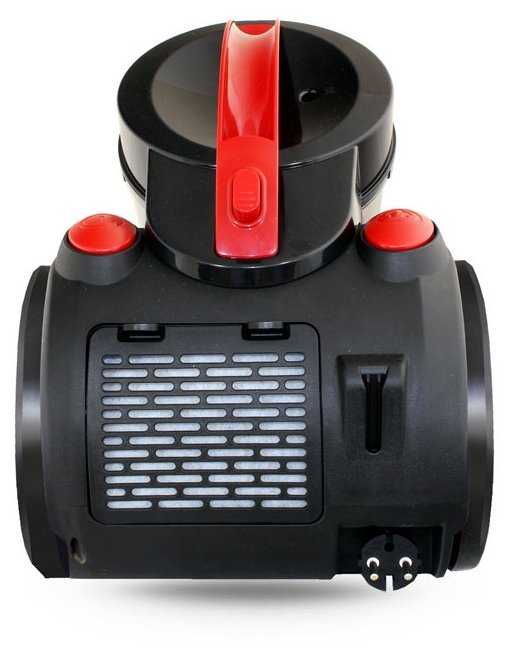 - Жесткое крепление шланга к корпусу предотвращает переворачивание пылесоса при активной уборке.