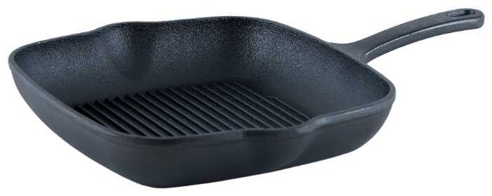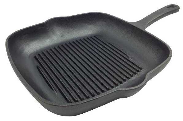 - + дешевая, прочная, с высокими бортами и носиками для слива лишнего масла и жира