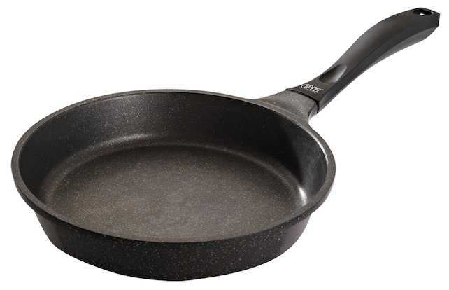 - + Отличная сковородка. Тяжёлая. Ничего не прилипает. Удобная ручка.