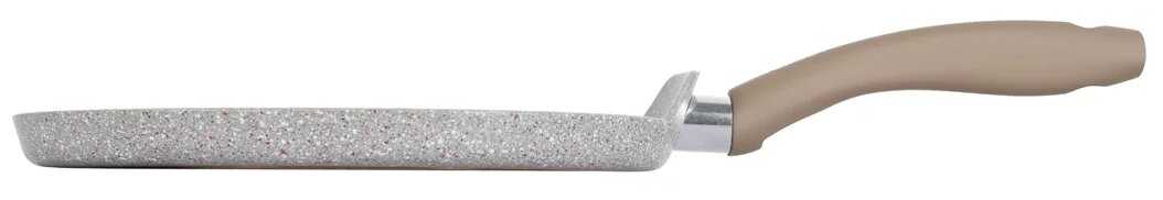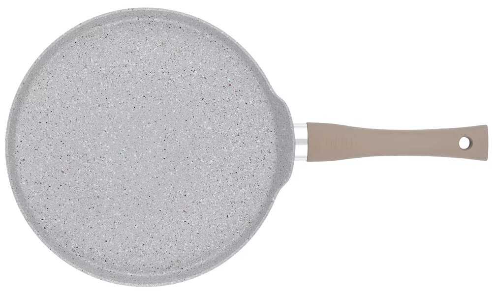 Купил жене блинную сковороду, очень довольная. У меня чугунная а у нее эта. Не прилипает и блины вкусные получаются.