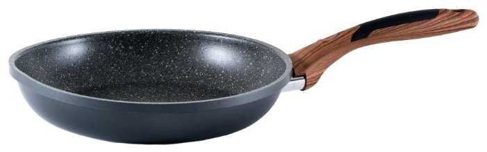 Хороший размер дна, скос бортов не сильно уменьшает размер дна - - Отклеивается черная накладка на ручке при мытье в посудомойке...