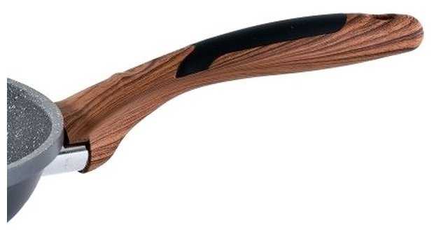 - + Антипригарное покрытие, недорогая, 28 см, индукционка её видит, хваткая ручка