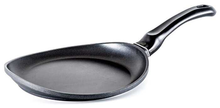 Отличная блинная сковорода, толстое дно не дает сковороде остывать, блины пропекаются равномерно. Благодаря загнутым краям тесто удобно растекается по сковороде. Модно жарить яичницу и тонки омлеты для тостов!