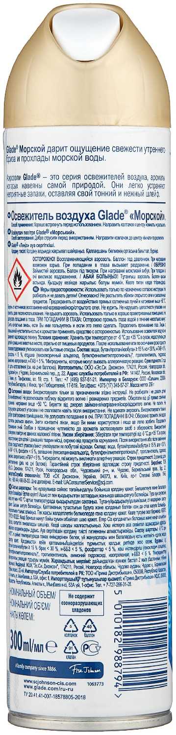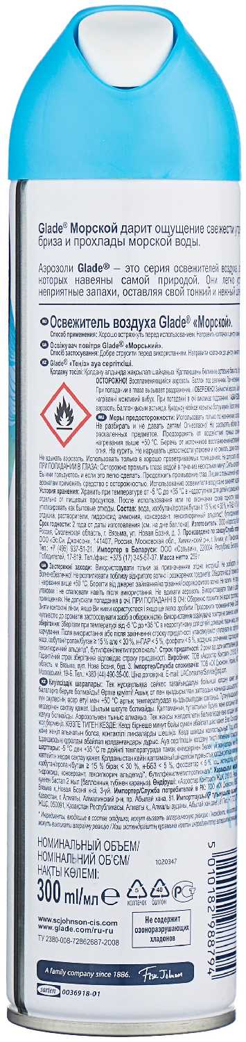 Характеристи Glade освежитель воздуха Морской, 300 мл
