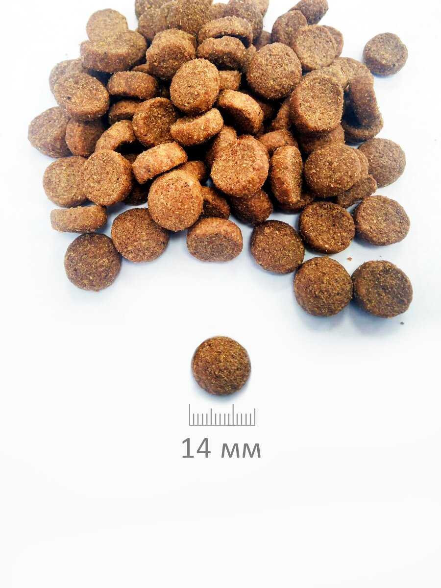 - + Собака, а у нас помесь овчарки с лайкой, очень хорошо поедает корм. Даю по рекомендуемой норме, ещё добавляем немного мяса и субпродуктов в рацион. Хороший запах и размер гранул, корм не жирный.